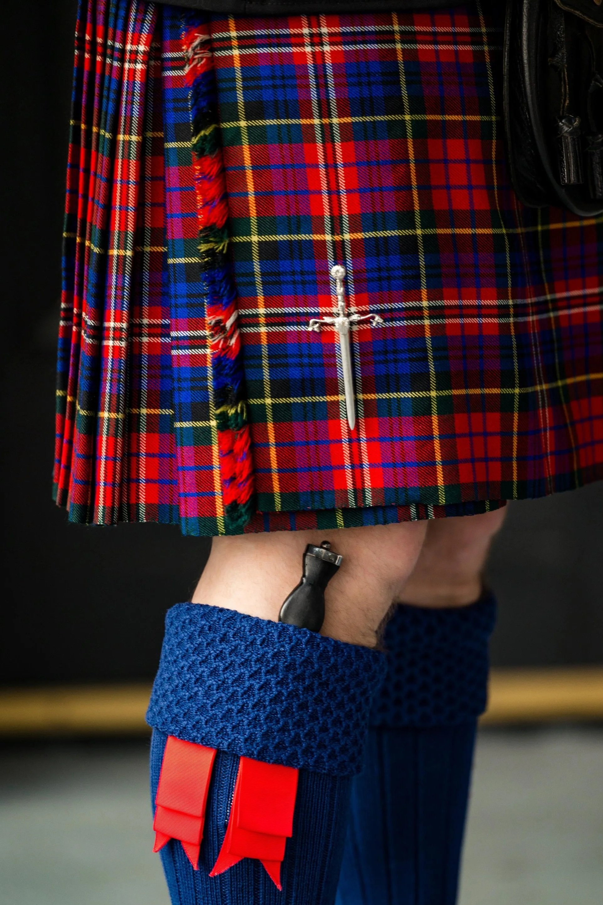 At the beginning each member of the band wore their own personal kilt, which meant that many different Scottish clans (families) were represented by the different patterns of the material in the members’ kilts. It wasn’t until about 2005 that the band had raised enough funds from performances as well as selling CDs, t-shirts and hats that it was decided to purchase matching kilts. A committee to pick the clan tartan decided on the Red MacPherson tartan, which the band has worn to this day.
