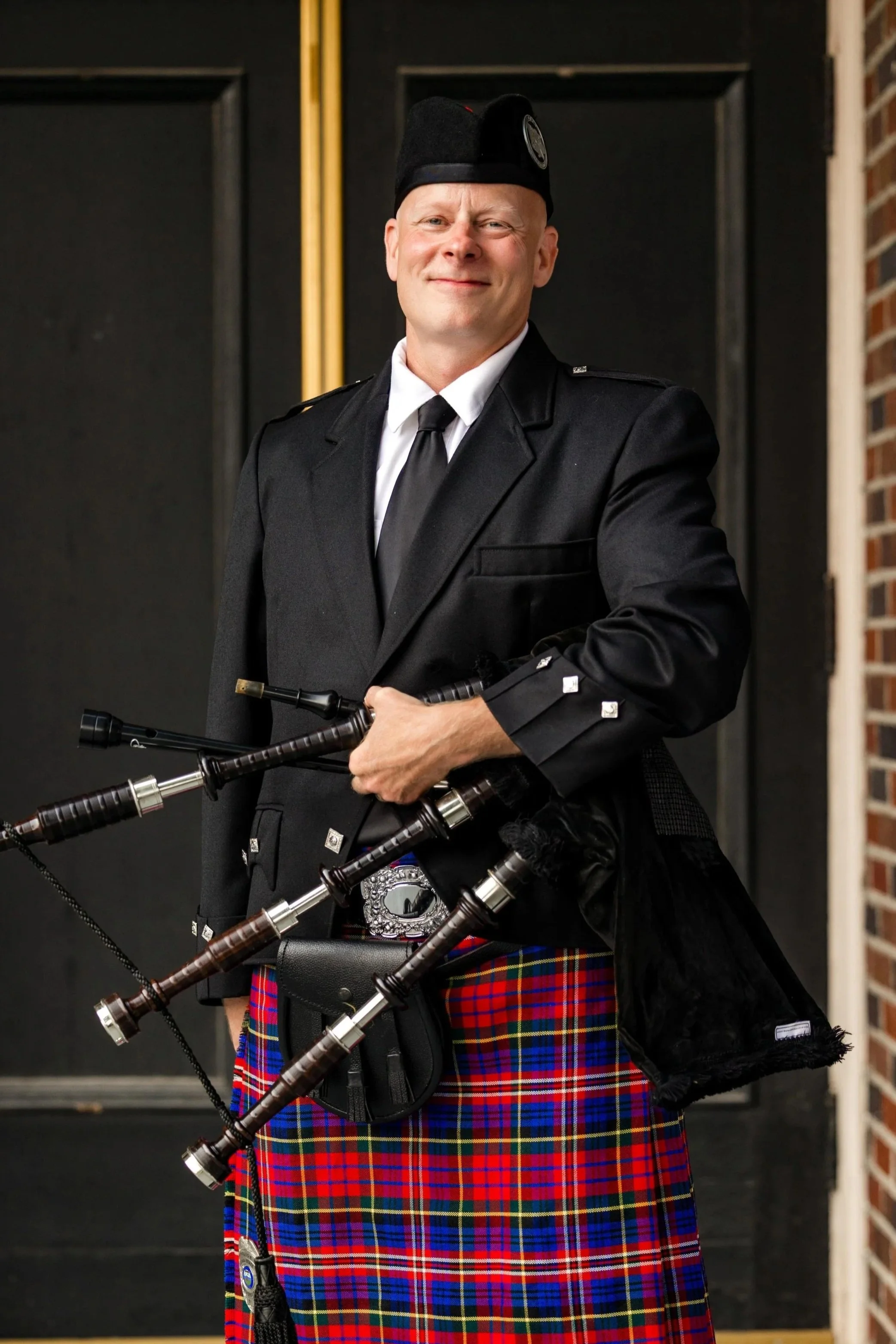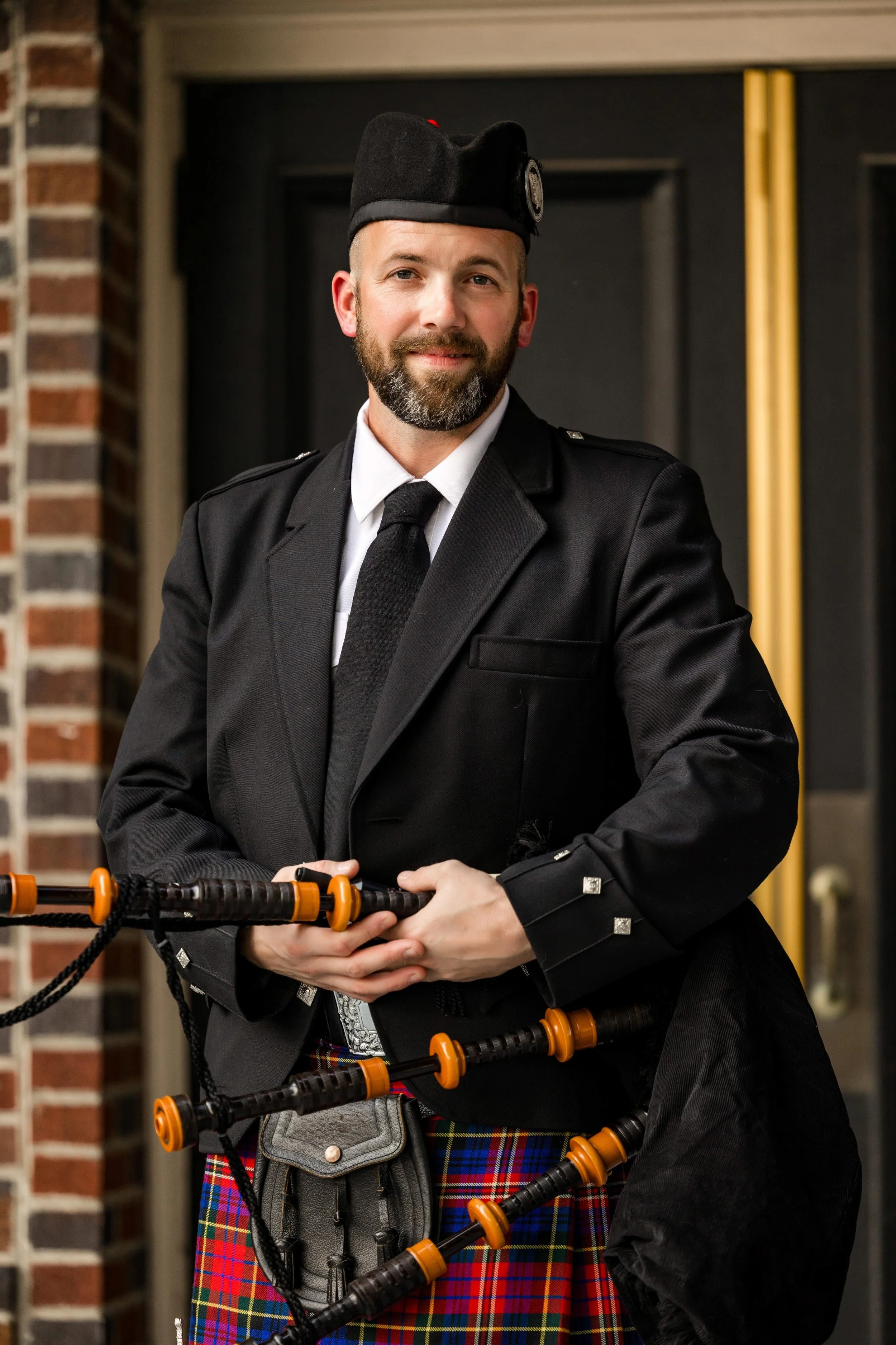 Ben explains, "My mother made ME do it!" As the son of Iowa Scottish Pipes and Drums original member, Sue Frambach, Ben finally began piping in 2019 after years of gentle persuading. Before piping, Ben graduated from the University of Northern Iowa with a BA in music (violin) and performed with numerous chamber music groups. Ben was also a church organist for for several years in Eastern Iowa before moving back to Des Moines, where he currently resides with his wife and three children.